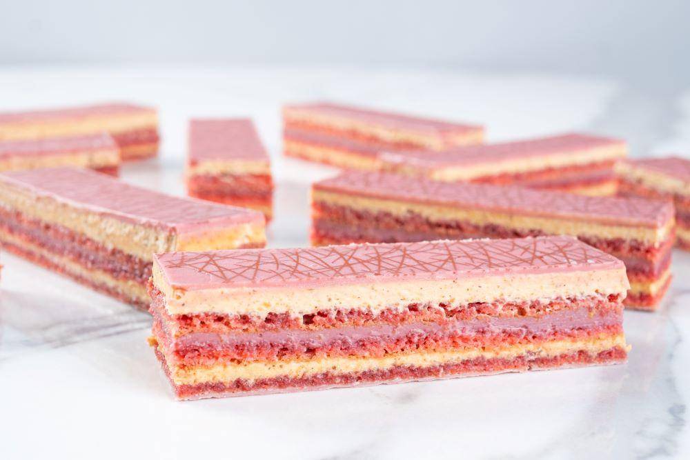 For those craving something more indulging and comforting, comes a perfect crumbly cake with almond crust and insert, topped with Raspberry compote and the softest ruby mousse.