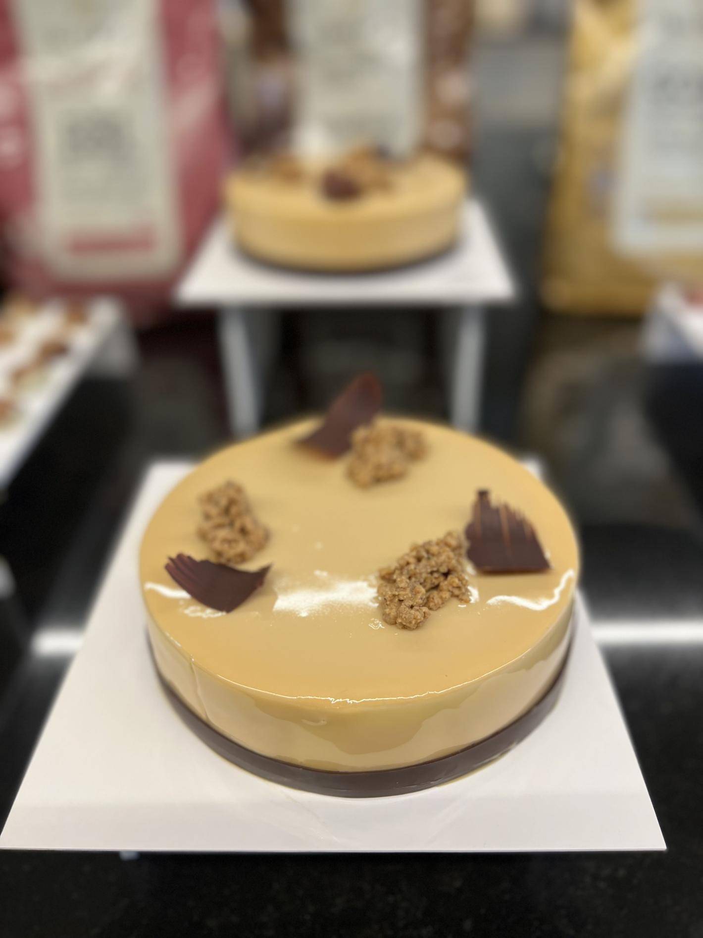We will just say Callebaut Finest Gold and Milk chocolate, cinnamon, crunchy biscuit, hazelnut, butter... and leave it up to you to decide if you prefer Gold or Crunchy cake.
