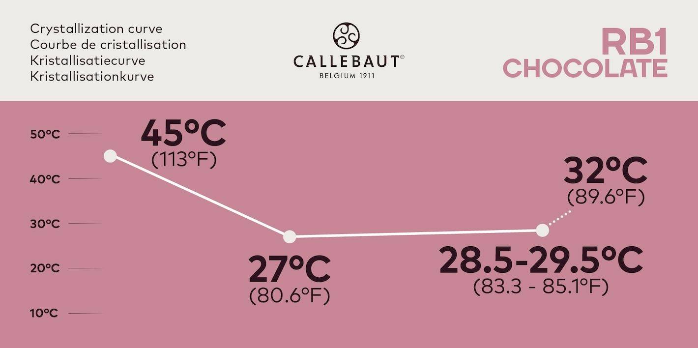 Ruby Chocolate45°C/113°F27°C/80.6°F28.5-29.5°C/83.3-85.1°C32°C/89.6°F