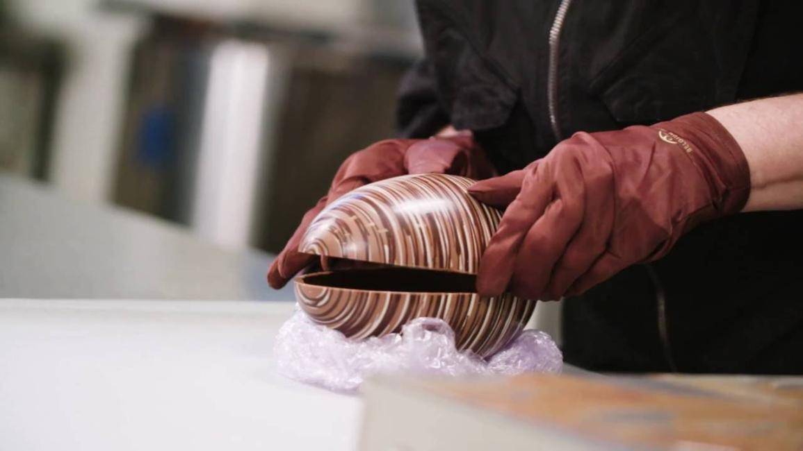 ホローチョコレートを取り扱う時は手袋を着用して指紋の跡が付かないようにしてください。 理想としては、型から外したら短時間で詰められるように、ホコリや小さなチョコレート片が付かないように表面がきれいな所でチョコレートを型から外してください。