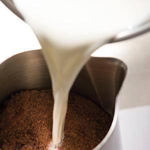 グラインド(粉末)ダークまたはホワイトチョコレートをスプーン2杯分(または50g)をピッチャーに入れます。