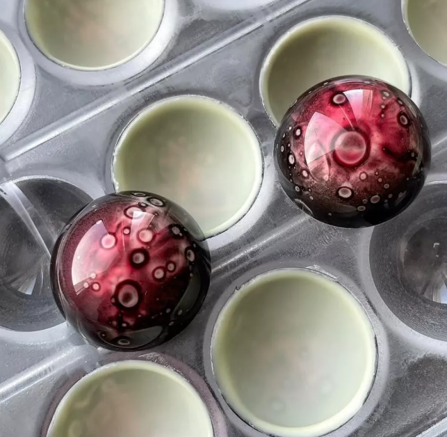 You will learn the author's painting techniques, the latest designs, and all the most important knowledge about the design of molded bonbons with different types of designs and ganaches.