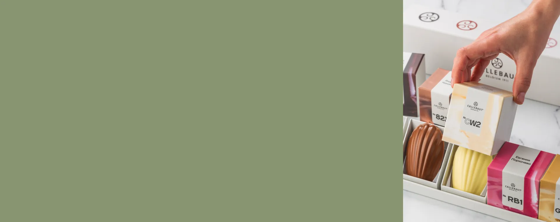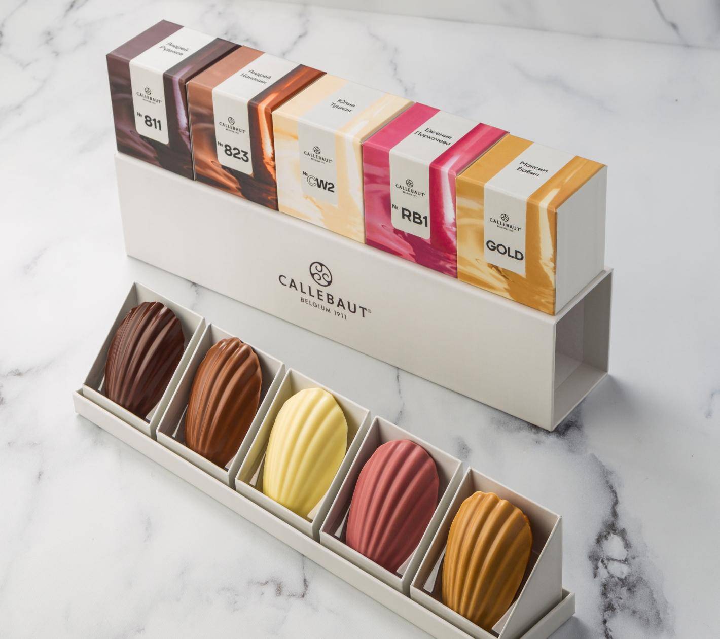 Печенье Мадлен в пяти цветах шоколада Callebaut
